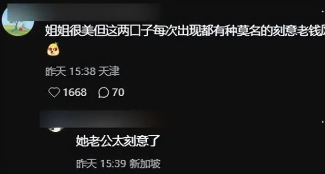 她是和她老公一起来的,穿搭形成鲜明反差,一个惊艳全场一个遭网友调侃。