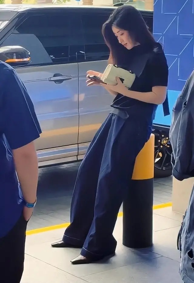 整个裤腿全都拖在地上,感觉她一走路就会被绊着脚。