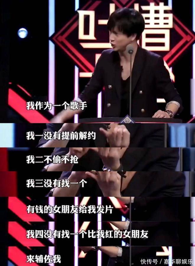 “我作为一个歌手,我一没有提前解约,二不偷不抢,三没有找一个有钱的女朋友给我发片,四没有找一个比我红的女朋友来辅佐我,我有错吗?红,我也要红得有尊严!”