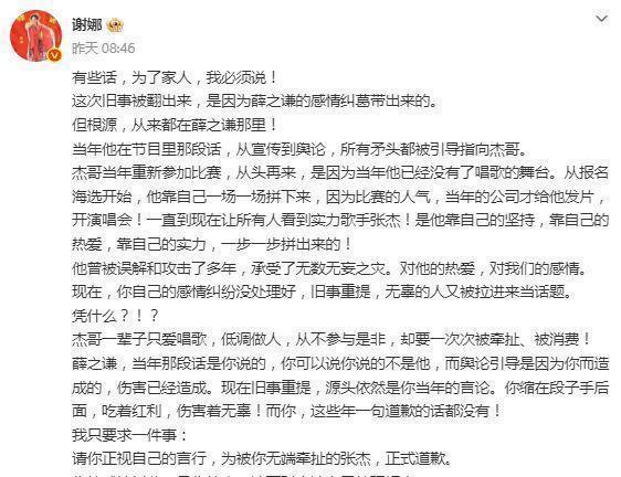 3月3日,谢娜在社交媒体发布长文,一改往日的嘻嘻哈哈,态度极为强硬地隔空喊话薛之谦。