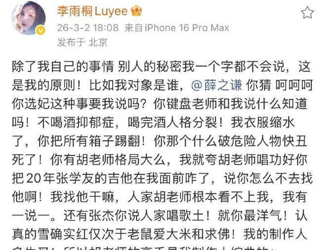 如果这段往事只是停留在网友的“考古笑谈”中,或许它终将随时间淡去,但2026年3月初,李雨桐接连不断的爆料成为了压垮骆驼的最后一根稻草。